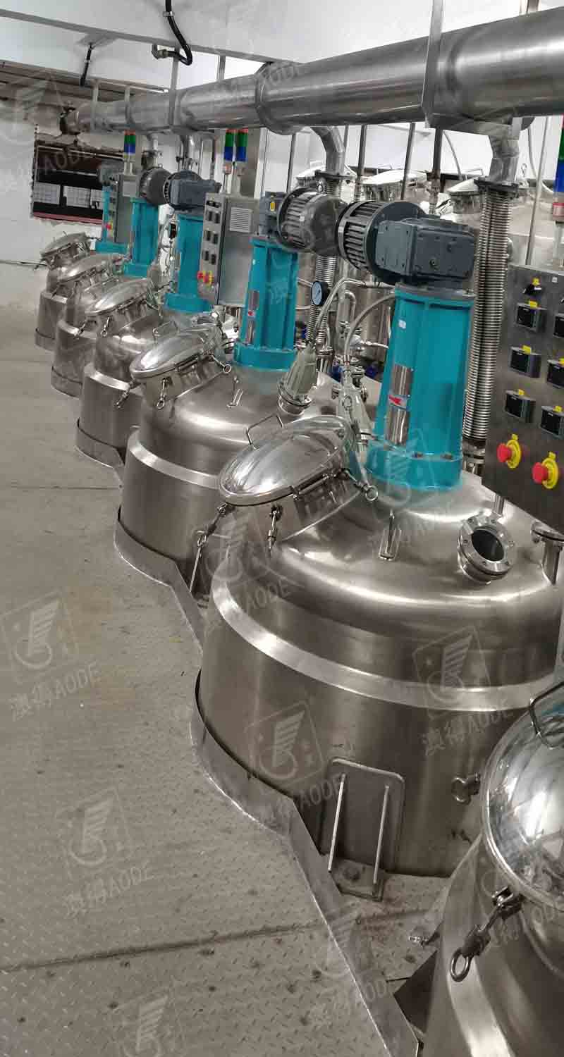 整套生產(chǎn)設備如下:加熱攪拌罐、冷卻攪拌罐、原料儲罐、冷水機、鍋爐、離心泵、氣動(dòng)隔膜泵、過(guò)濾器、閥門(mén)、防爆電器、管道、鋼結構平臺、PLC控制系統。